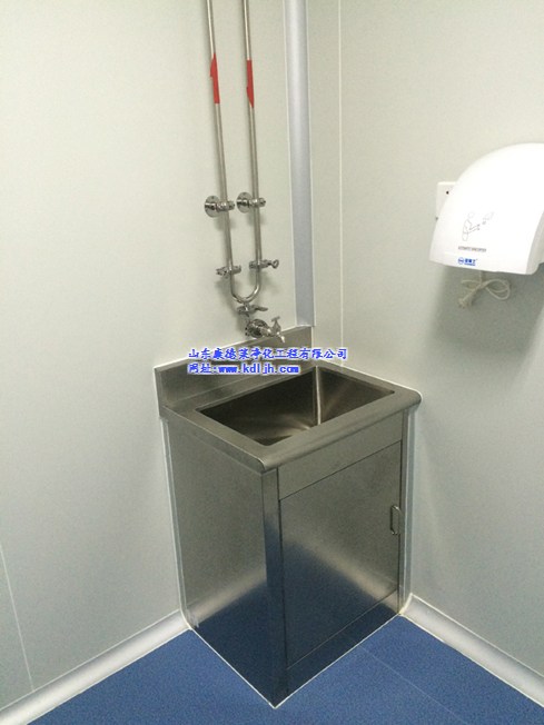 彩鋼板的三維連接處使用三維接點過度,而彩鋼板與墻角地面則用鋁合金槽連接。吊頂材料亦為彩鋼板。微生物檢測室地面為環氧樹脂材料,具有無縫隙、耐腐蝕、平整、容易清洗的特征。地面地腳線用陰角鋁材裝飾,美觀且嚴密性好。