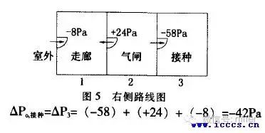 某房間是否對大氣保持絕對負壓差,完全不需直接測量室內外壓差,而通過相對壓差的計算可以得出通向室外路線上的任何一間的絕對負壓差。在此路線上的任何一間對鄰室即使有相對正壓,也不代表它對大氣就是絕對正壓,完全可能仍是絕對負壓,這應通過計算確定。