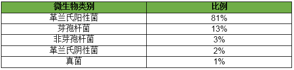 數據表明,在所有級別的潔凈區中,檢出菌類別的比例大概如下: