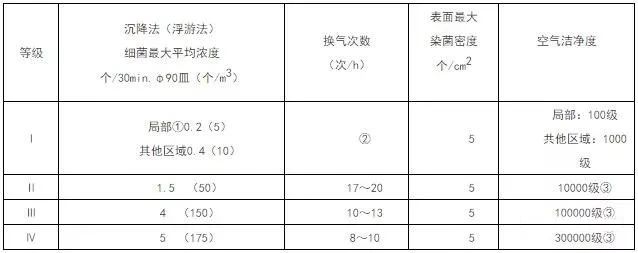 1、醫院潔凈用房在空態或靜態條件下,細菌濃度(沉降菌法濃度或浮游菌法濃度)和空氣含塵濃度應按表1分級。換氣次數不應超過表7.2.1規定上限的1.2倍。
